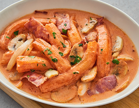 분모자는 떡볶이나 마라탕에 많이 사용됩니다. 떡과는 다른 느낌으로 탱탱한 식감을 좋아하시는 분들이 많습니다. 분모자는 소스가 안까지 잘 스며들어서, 깨물어 먹었을 때 소스의 진한 맛이 같이 느껴집니다.