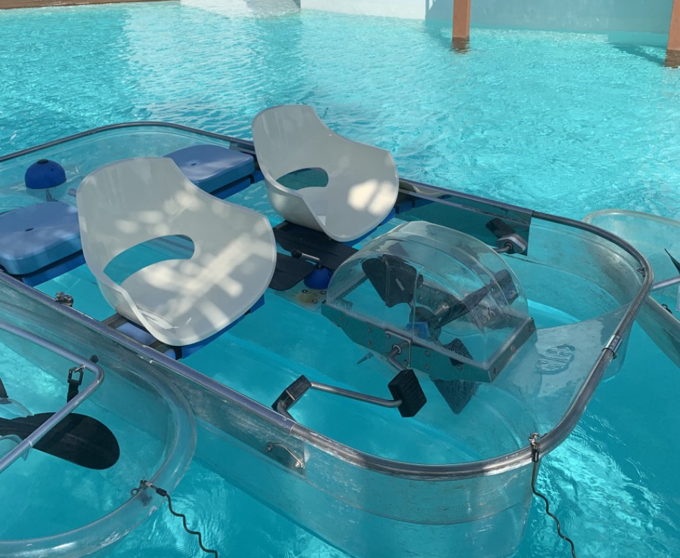 - 투명 카약이나 투명 패들보트가 있습니다.