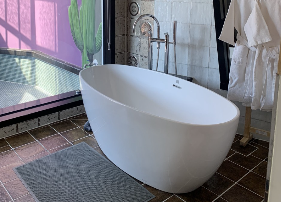 부엌에 있는 폴딩도어를 열면 곧바로 수영장으로 갈 수 있습니다. 상단의 욕조 밖에 있는 노천탕 이용을 위해서는 추가 요금을 내야 합니다. 물을 받는데 3시간이 걸립니다. 이용을 위해서 안내문은 아래와 같습니다.