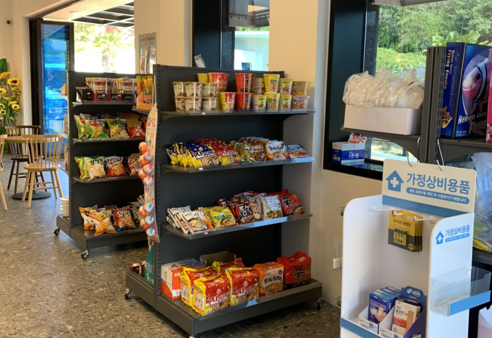 드레피인 매점에는 컵라면, 쌈장, 소금, 과자 등 다양한 물품이 있습니다. 단, 가격은 마트에서 사는 것보다는 비쌉니다.